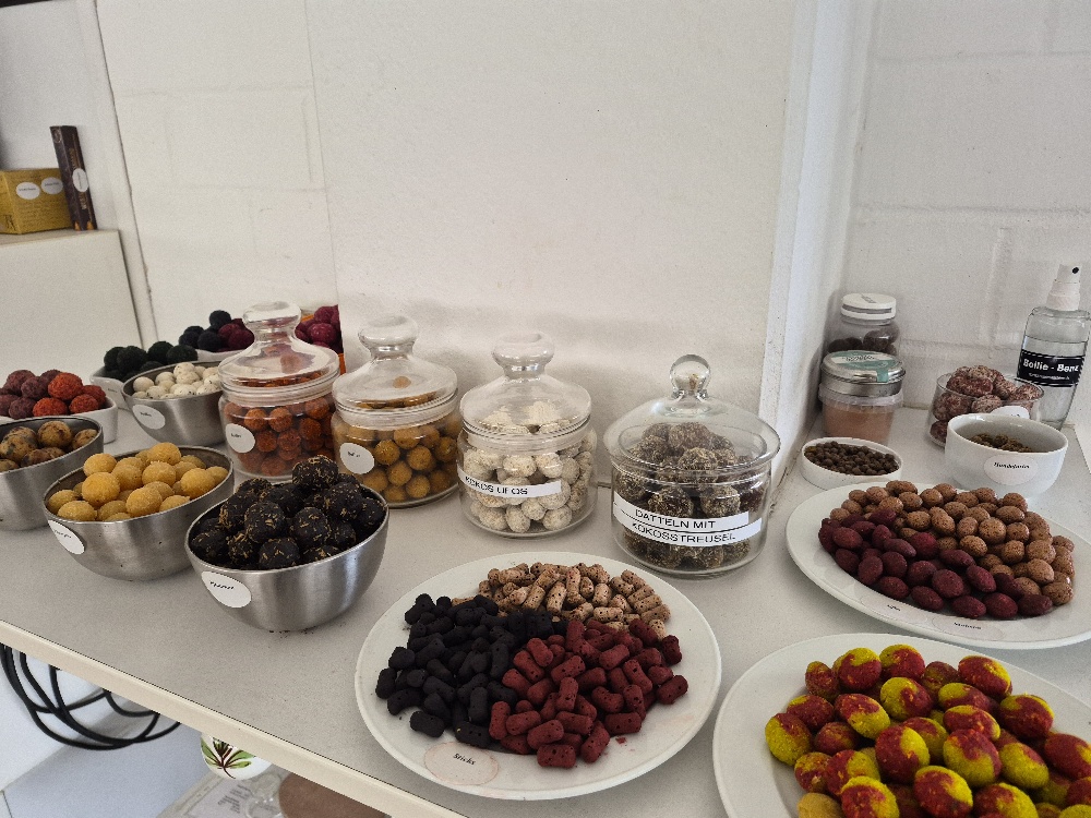 Mäusefutter, Kaugummis, Shampoo-Kugeln, Pflaumen, Hunde-/Katzen-/Pferdefutter, Kokosnuss-Ufos, Kuchen, Energiekugeln, Marzipan, Datteln, Schokokugeln und sogar Seed-Balls etc. —> hier ist fast alles, in vielen möglichen Formen und Farben dabei :